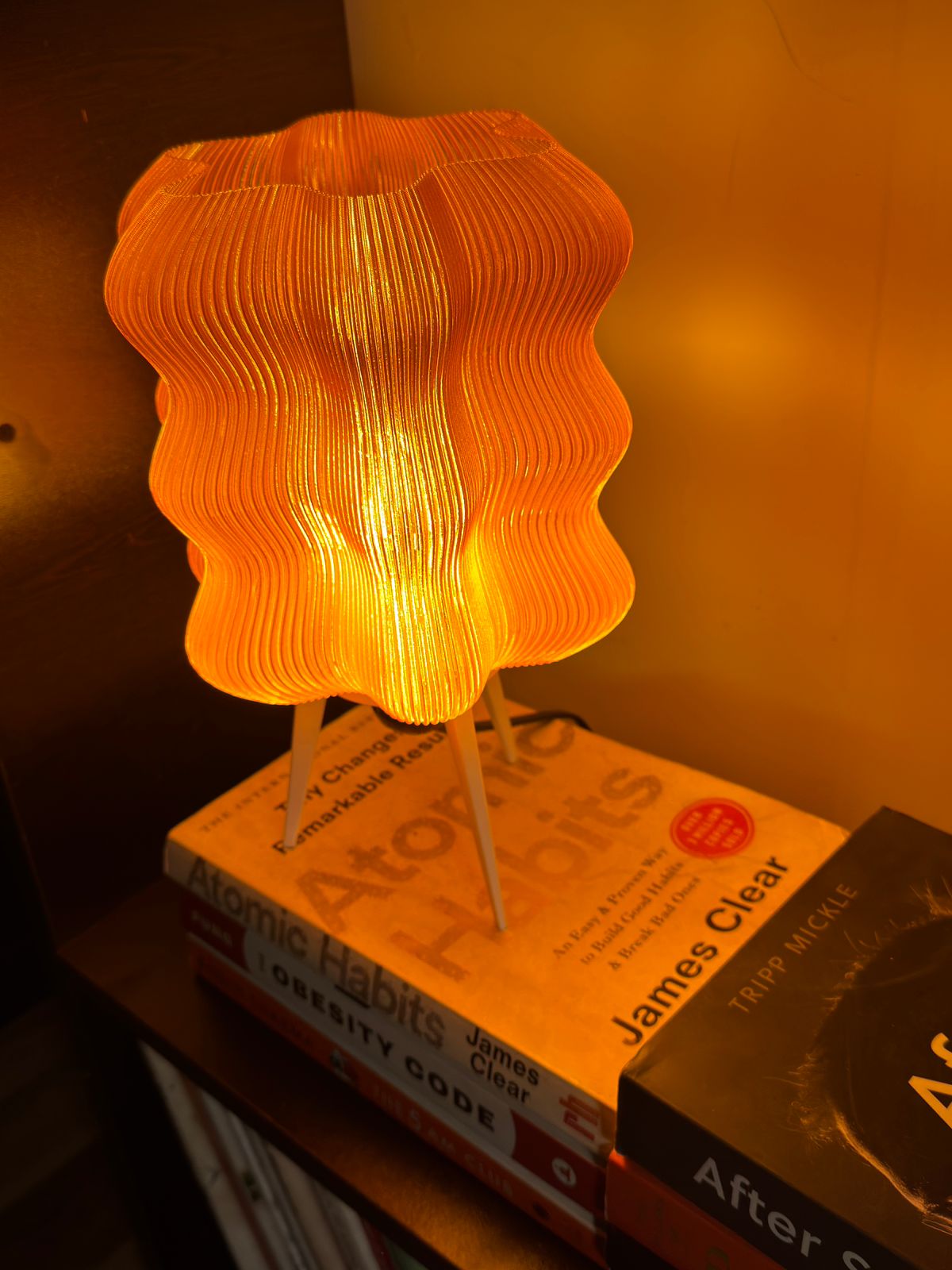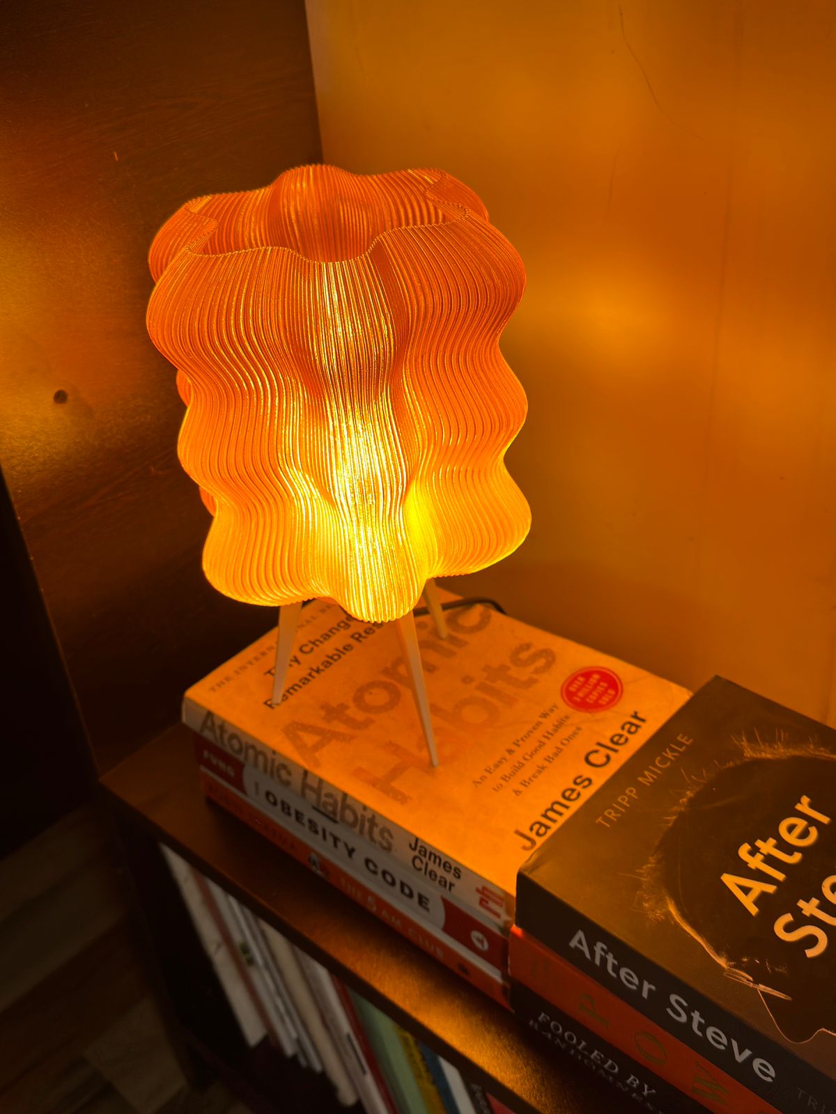 The Wavy Lamp is a modern sculptural table lamp crafted using precision 3D printing technology. Its flowing, wave-like design and layered texture create a soothing play of light and shadow, making it a perfect statement piece for contemporary spaces.